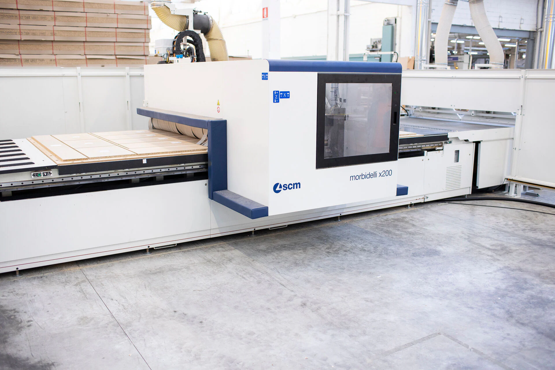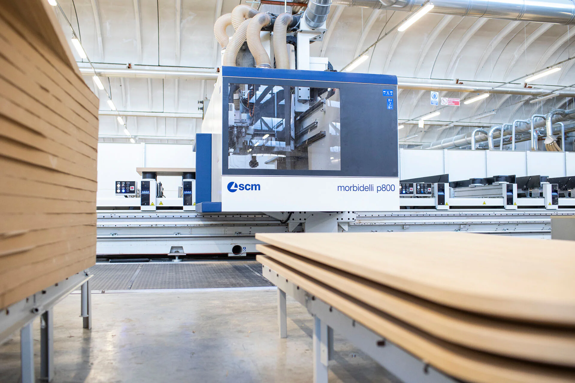 The latest made in SCM purchases are instantly visible at the Asiero plant. The entire "batch 1" process starts from the "morbidelli x200” nesting cell complete with built-in automatic loading with labelling system. The cell's cutting speed allows for a previously inconceivable productivity even with highly flexible machining work. "Our aim was to deal with the smaller batches more efficiently and with a qualitative result in line with market demands" explains Giancarlo Sola, Operations Manager.