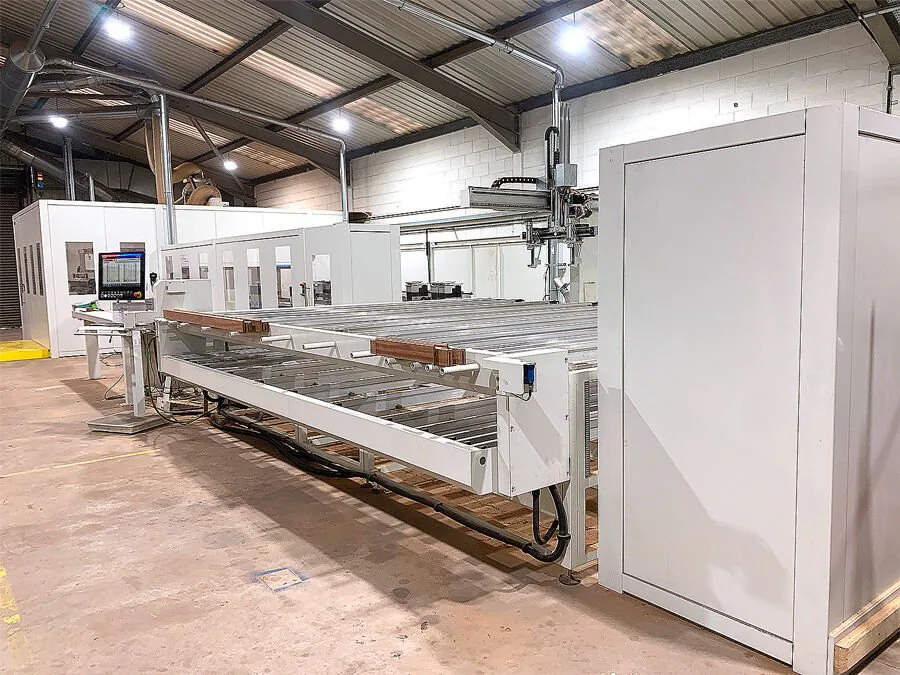 Specifically, the machine model chosen by Chapelhow is a “windorflex 1” equipped with one automatic worktable, possibility to execute pieces with 4500 mm max. length, two machining units with HSK 63F Plus tool-chuck, and automatic loading/unloading bench fitted with one handling device.