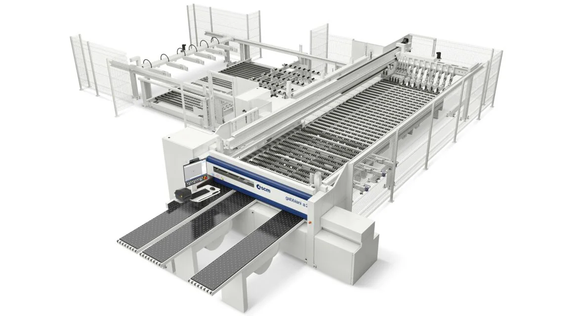 Indeed, the new "gabbiani a2" was designed to meet every kind of panel machining requirement, from mass production to "batch 1". With 95, 115 and 125 blade projection options, it offers maximum performance in terms of productivity and cutting quality, and this occurs thanks to the new functional units found in the range: from Saw set, for a fast, accurate automatic tool change, to Flexcut 1D that allows for complex cutting patterns in rapid times. The powered side aligner for fast positioning during the cutting process and the automatic panel labelling system before the cutting stage, that drastically reduces processing times, are key to increasing productivity.