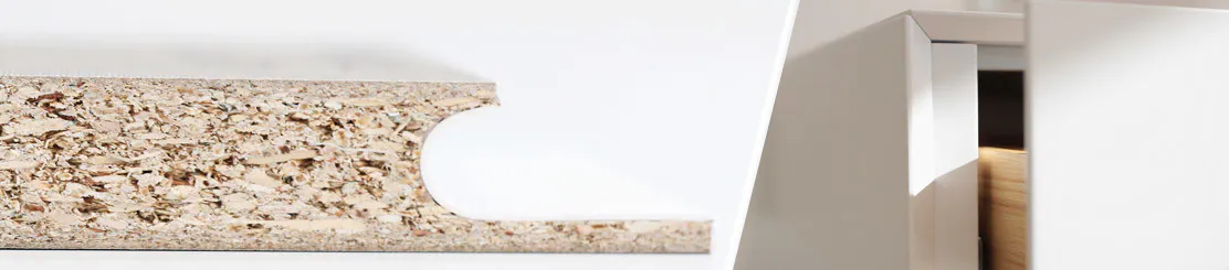 At Gamadecor people are looking for great design. They imagine, design and build furniture that is extremely elegant, with absolute shapes, where it is the leaves or the very shape of the furniture that create points for opening a door or a drawer. Rigorous, almost minimalist shapes. Creating the handle from the leaf itself; “J shape” is the best-known definition, but not necessarily, because these “handles can be produced by the most complex profiles, easy to obtain from a solid wood element or one that will be varnished. It’s more difficult to find a less expensive solution that brings this elegant feature within reach of the many.