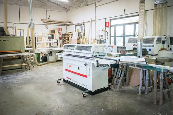 The first SCM machine arrived in the 80s, with a L'Invincibile thick planer, which paved the way for all the others; the carpenter's shop currently has a well-stocked SCM machine, confirming the appreciation and loyalty to the brand that has been going on for forty years now.