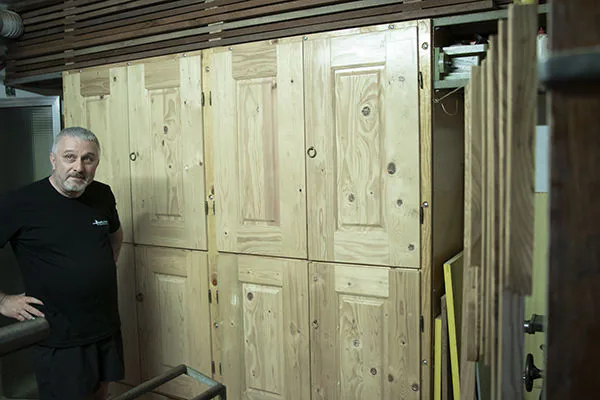 In fact, next to his garage, he has an area dedicated to trunk cutting. Nearby there is an area used for seasoning and inside there is the minimax lab 30 combination machine with which he manufactured all the furnishings of his house in the mountains and many other furniture.