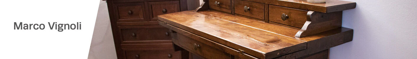 His production mainly concerns solid wood furniture, rustic style, worked and finished according to the rules of art.