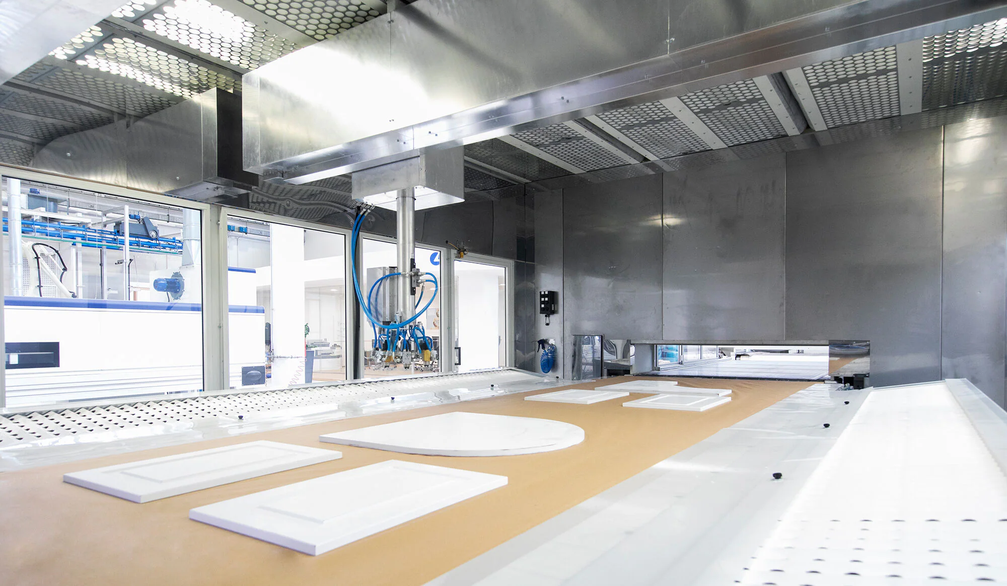 Cartesian robot with two arms to paint panels, designed for exceptionally high-precision spraying.