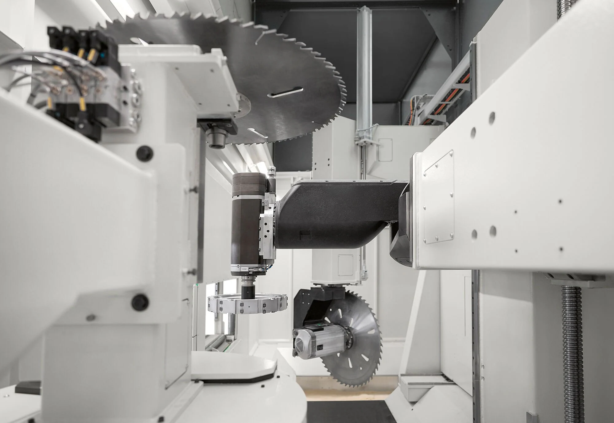 The project is further enriched with three new units to process both top and bottom face of CLT panels up to 3.700 mm wide and 500 mm thick.