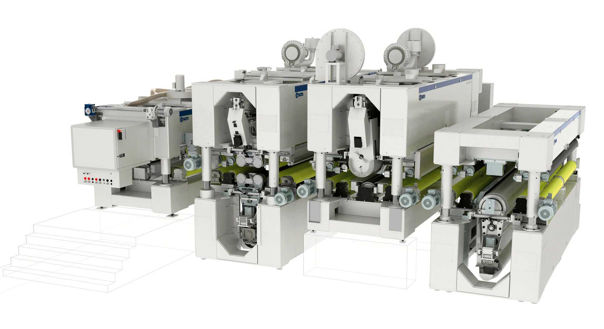 DMC SYSTEM XL, a highly modular automatic sanding-calibrating machine for processing CLT panels that can be employed in the timber construction sector.