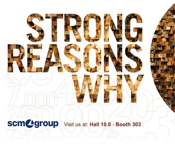 Visitors will be welcomed in a new exhibition space of over 1,300 square metres dedicated to the group's new products and solutions. "Strong Reasons Why" will be the driving concept behind the entire SCM communication campaign at the fair. The idea is to focus on the group's strong values, which translate into tangible benefits for operators, and to demonstrate the company's ability to offer industry professionals an extremely wide and complete range of woodworking products and solutions.