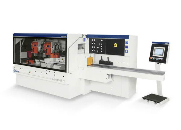 As part of the automatic planers-moulders line, SCM will display the Superset NPTL which can process workpieces from 25x6 mm to 260x200 mm. It comes with a TTL device for automatic adjustment of the left vertical spindle, allowing you to process a series of pieces with different widths without the need to change machine settings.