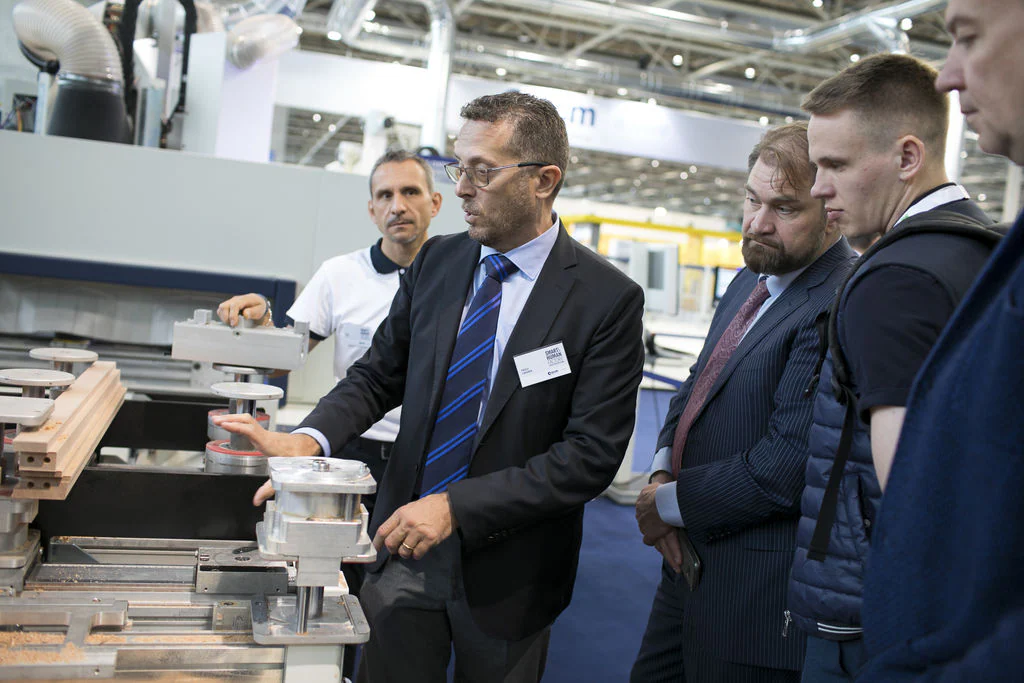 Considerable interest was shown in all the new models designed and developed by the Group for each of the wood working stages: those integrated into the human friendly digital factory, like flexstore hp, the high performance automatic warehouse for shaped panels, integrated with the new morbidelli x400 nesting centre and the "stand alone" ones. The dmc system sanding technology integrated with the Superfici spray painting systems and the new robotic glue applications as well as the new sergiani 3d form press attracted a lot of attention at the surface treatment island. The new CNC hypsos and balestrini power machining centres for solid wood technologies were well received as was the oikos x for carpentry work, thanks to its exclusive 6-axes machining heads. There were also plenty of new entries for joinery machinery starting with the new class px 350i mobile carriage circular saw.