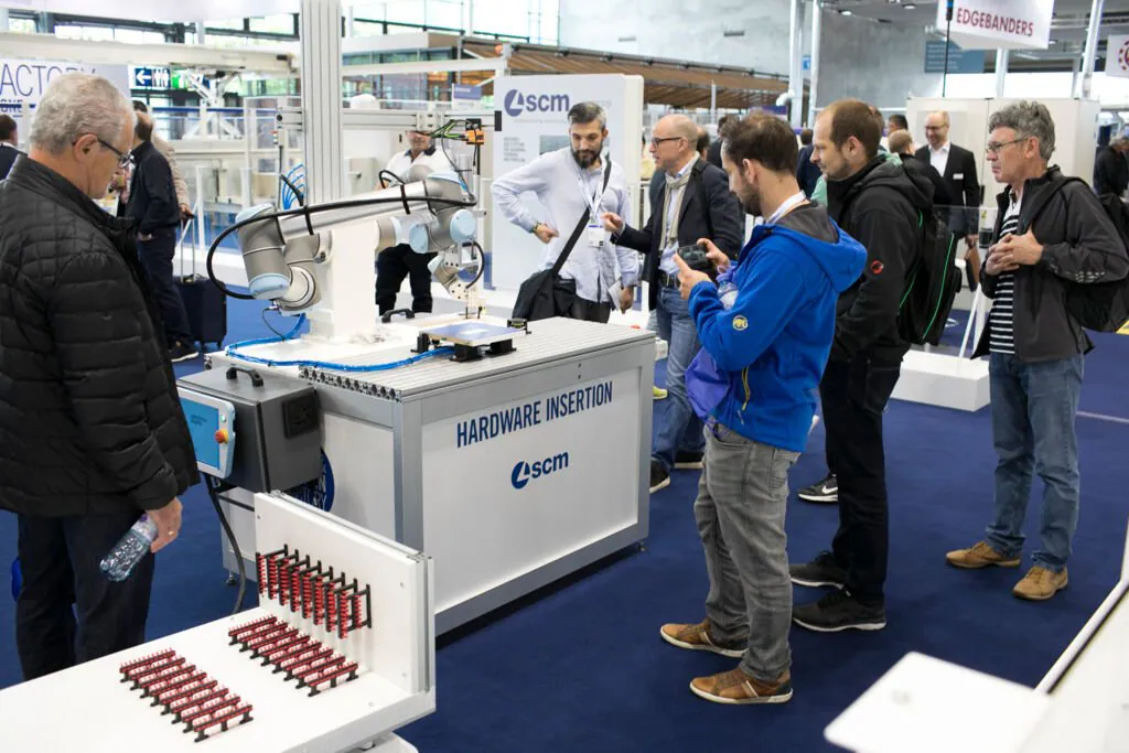 As far as contacts and business opportunities are concerned, Ligna 2019 was a great success for SCM. As the trade fair comes to an end, Ligna once again proves to be a top quality international event, with more than 90 thousand visitors, according to the organisers, from more than one hundred countries. The most important companies in the woodworking sector and active on all the key, essential international markets, hastened to the trade fair in Hanover to discover what was new in the industry. One of these new entries was the Smart&Human Factory which took centre stage at SCM's bright, elegant stand and was a key attraction. On the crest of the concept wave "You will never work alone" that proves the Group's unique strength as a partner always ready to accompany and support its clients with the most advanced technologies, SCM's digital factory has shown how human work can be integrated with that of industrial, collaborative robots in state of the art cells that are open and safe, to relieve operators of low added value jobs and allow them to focus on supervising the production process.