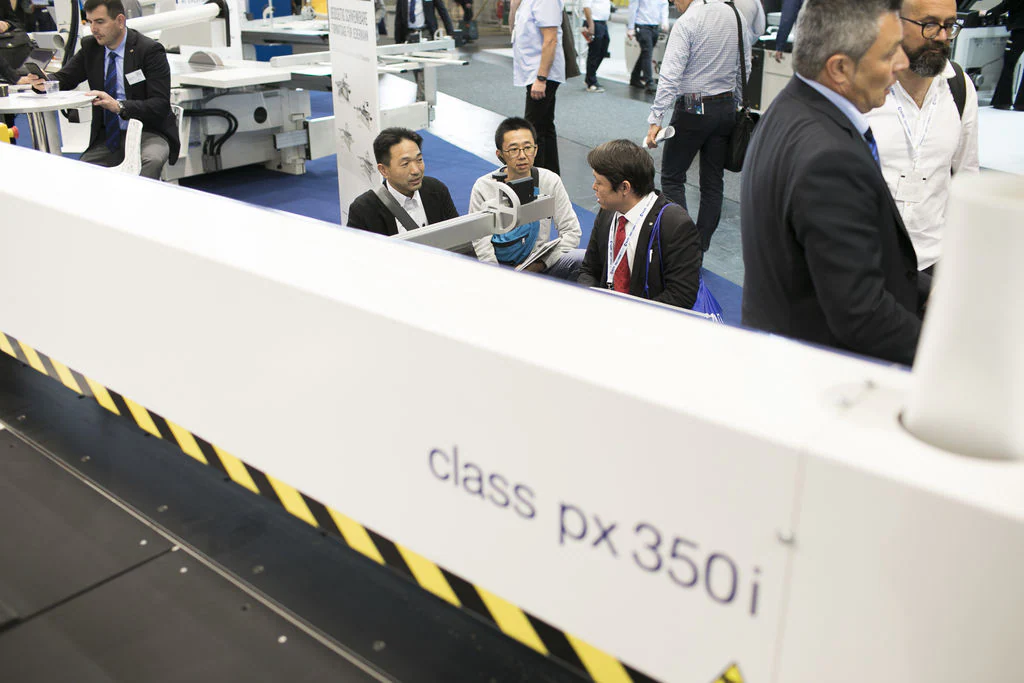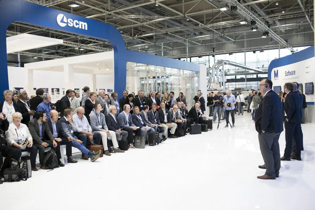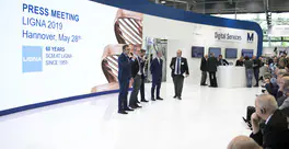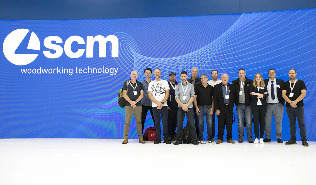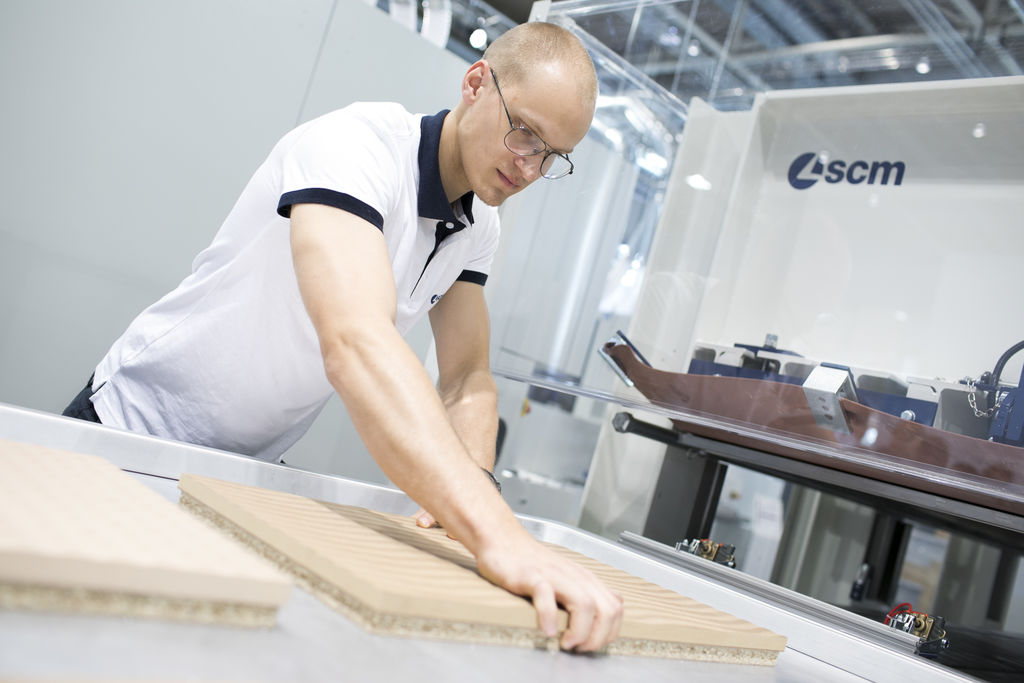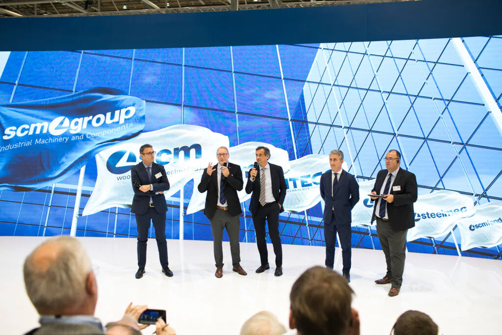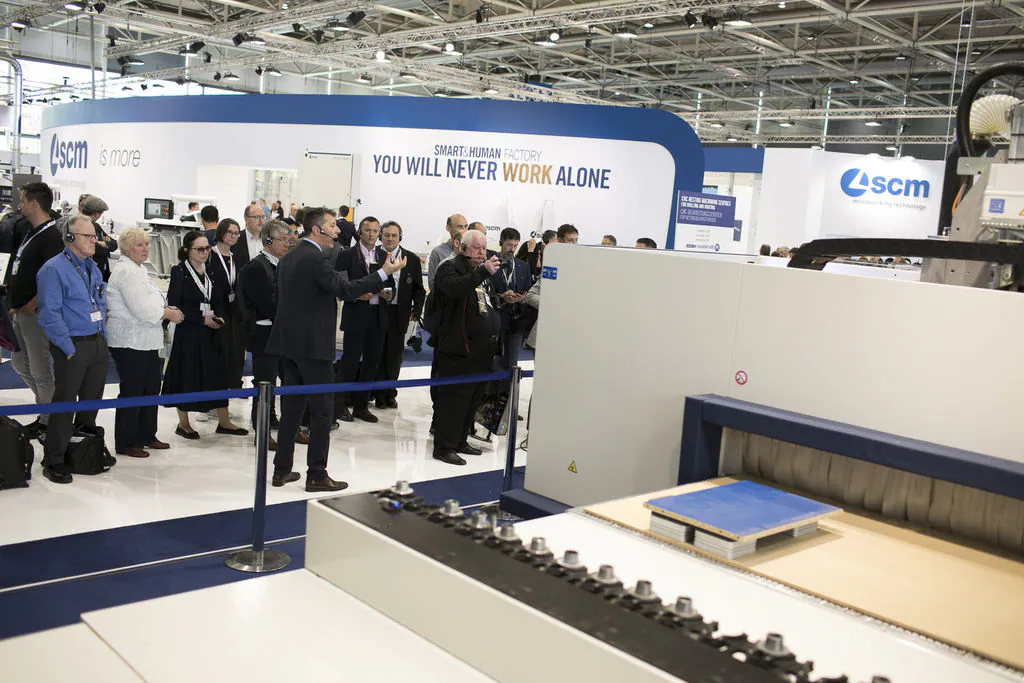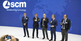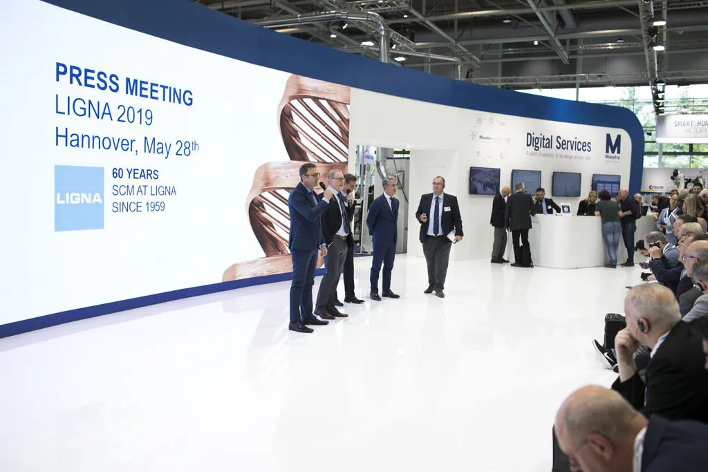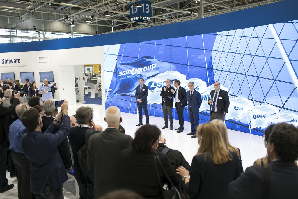 Delegations of clients from all over Europe, but also from countries as far afield as China and Australia. The prestigious Hanover Trade Fair, the most important international event for the world of woodworking continues, with a great deal of interest being shown in the vast range of SCM models on display at the huge 4,000 m2 stand. Among the models on display are the integrated solutions for surface treatment, key players in the Surface Technology Guided Tour organised by the Trade Fair, that stopped off yesterday at the SCM stand in Hall 13 and at the Superfici one in Hall 16. Centre stage, however, on this second day, was occupied by the press event with more than fifty journalists from the most important industry magazines around the world. Giovanni Gemmani, Scm Group's President reminded us all that SCM has been taking part in Ligna for sixty years, since the edition in 1959: a long, highly satisfactory path filled with new challenges at every turn, which the Italian Group has managed to overcome successfully thanks to its range of ever developing, innovative products and services. Luigi De Vito, SCM Manager reminds us that the record figures achieved in 2018 are proof of this: the Group's turnover was 700 million, 70% of which from the wood industry alone. De Vito also reminded the press that 2019 opened with a significant growth rate, in numerous markets in Europe and other continents, thanks to SCM's ability to act as an all-round partner and consultant to its clients. Uwe Kosok, Manager of the German branch, underlined future priorities, starting with the strengthening of the sales and technical support network, while Gian Luca Fariselli, the Group's Communications Manager introduced the technologies leading the way at this edition. The press conference was followed by a "virtual tour" of the Smart&Human Factory, thanks to the demo arranged for the occasion, and a tour of the stand with Federico Ratti, Innovations Manager, to find out more about the different technologies available to all those companies involved in secondary wood processing.