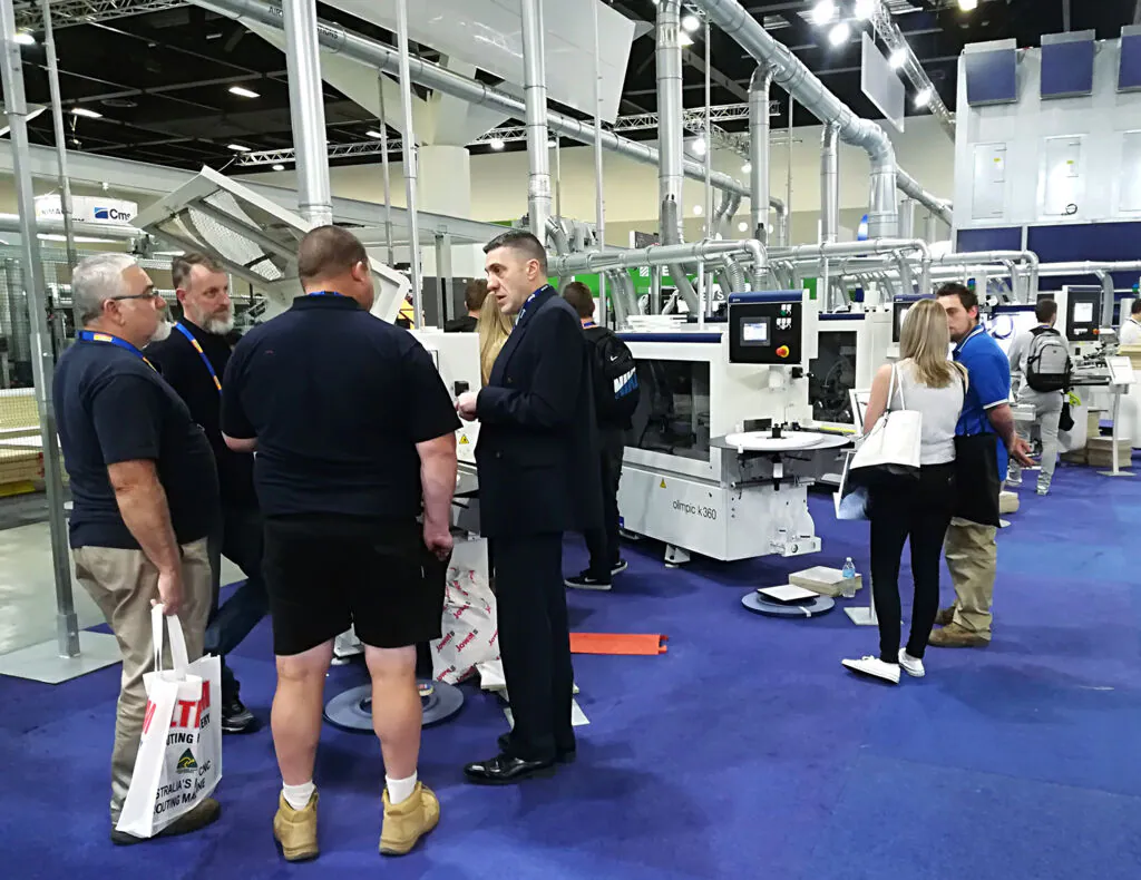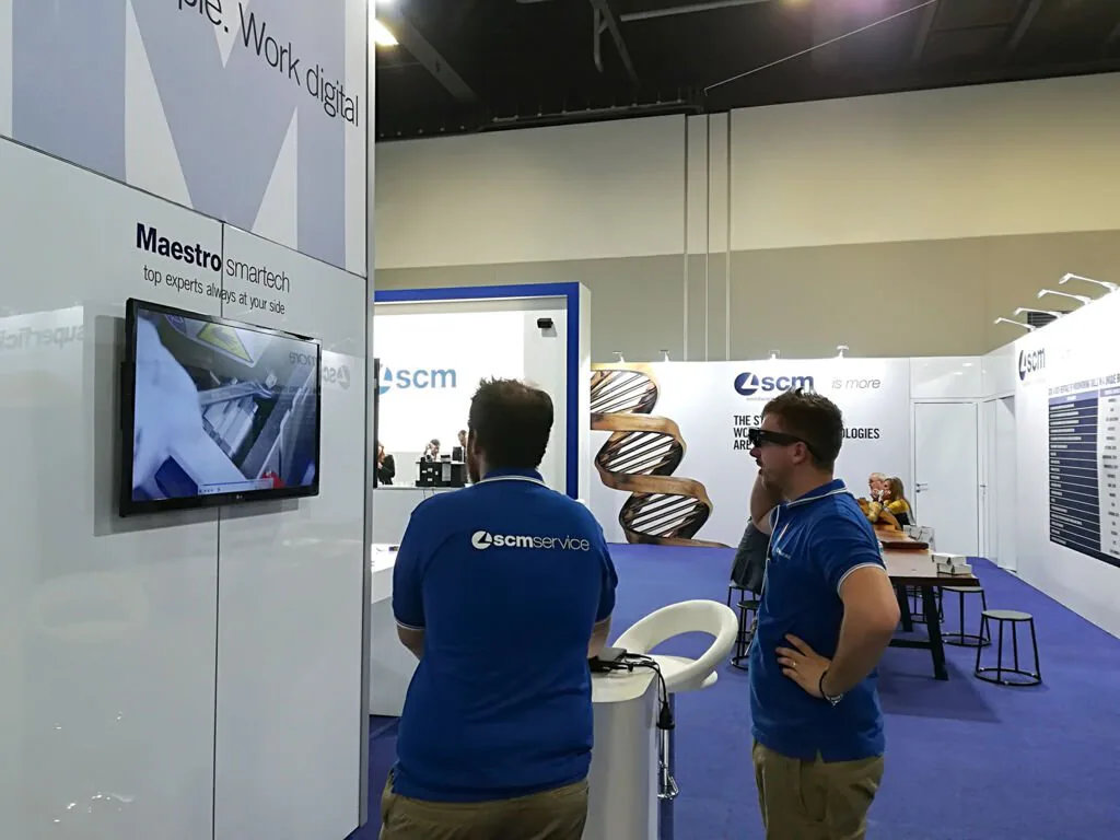 Prior to the fair opening, SCM held a Sales Meeting (3 July) with Lee Gabbett, Managing Director of Scm Australia, and Gian Luca Fariselli, Scm Group Corporate Communication Director. On opening day, an Scm Australia team of experts welcomed a huge crowd of visitors at the 1,300 square- metre company stand. The heart of the company exhibition space, with its unmistakable white and blue colour combination, is the Digital Hub, featuring the Maestro Digital Systems solutions, and especially the latest IoT additions – Maestro Connect, which helps you monitor and optimise production processes to provide smarter and predictive maintenance, and Maestro Smartech, the innovative remote assistance and maintenance system based on the use of augmented reality glasses.