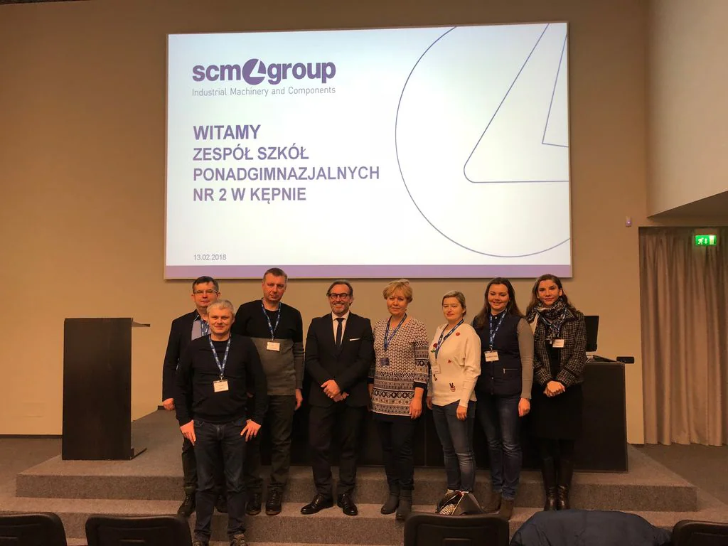 A delegation of lecturers from the Polish vocational school of ZESPÓŁ SZKÓŁ PONADGIMNAZJALNYCH NR 2 W KĘPNIE, from Kepno, visited Scm Group Headquarters in Rimini this morning to discover the most advanced solutions in the woodworking machinery sector, starting from “Industry 4.0” innovations.