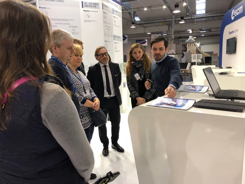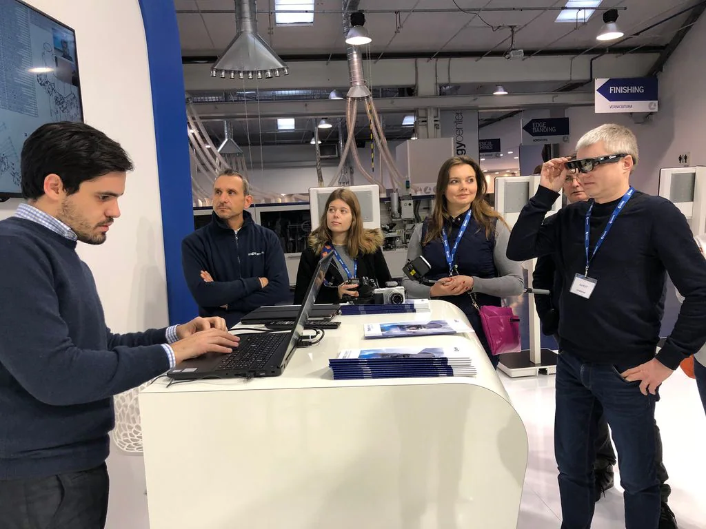 The group, welcomed by Fabrizio Pazzaglia, Scm Group's European Regional Manager, was particularly impressed by Scm's Digital Hub. The lecturers enjoyed a close look at the different services of Maestro Digital System, designed to make the job of the wood operator simpler and smarter, and above all the Smartech smart glasses, the innovative assistance and remote maintenance system in augmented reality, which redesigns the future of the relationship between company, service and customer.