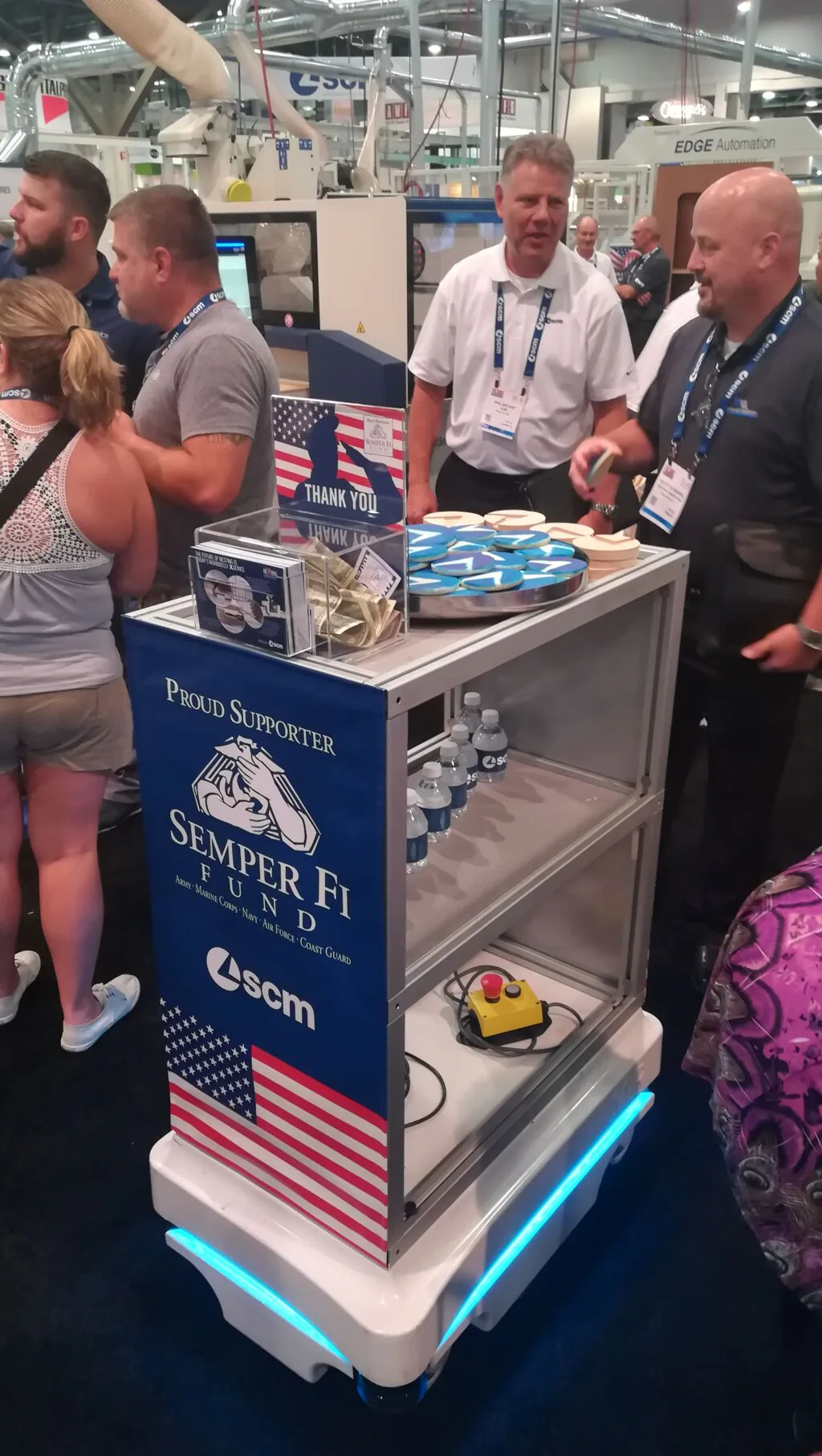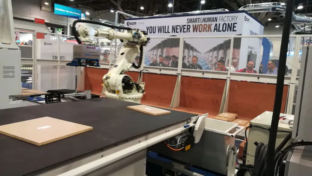 A guaranteed show in Las Vegas, but this time it is the best of woodworking technology to take to the stage in this famous "stars and stripes" destination. The AWFS Trade Fair continues with excellent attendance at SCM's exclusive stand, firm in the knowledge of its continuous, outstanding expansion over the last two years, even on the North American market. The widest, most varied range of advanced solutions for the entire secondary wood processing sector is on display at the vast SCM exhibition area (stands 8200, 8207, 8214, 8600, 8607) where the general public can enjoy daily guided demonstrations of the Smart&Human Factory. The intelligent factory of the future unveils itself to visitors with its flexible, automated, modular cell system, easily reconfigurable and integrated by 7-axis anthropomorphic industrial robots, collaborative robots that work alongside the operator in complete safety, as well as unmanned shuttles. The cells contain state of the art SCM solutions for nesting, edgebanding, sanding and assembly, with new IoT Maestro digital software and services to simplify and optimise the processes for achieving previously inconceivable productivity levels. “You will never work alone” is the concept taking centre stage at the trade fair, demonstrating SCM's strong capability of acting as a partner to all the companies in the industry, both pre and post sales, and never leaving them on their own. Innovation at the Las Vegas trade fair also goes hand in hand with solidarity. SCM Nord America reiterates its endorsement of the charitable “Semper Fi Fund” organisation which provides support to members who are war veterans or survivors with critical irreversible physical injuries and health issues.