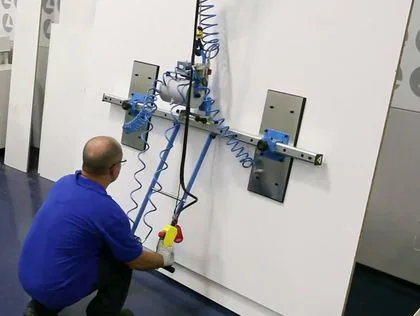 Assisted loading especially suitable for the safe and speed movement of any laminated and chipboard panel which can be hooked by the suction arm.