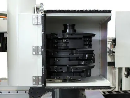Each of the 4 electrospindle with HSK 85S rapid tool chuck can be equipped with a RAPID 6-position automatic tool store, allowing up to 24 different profiles to choose from. Tool management and recognition can also be available.