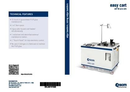 Easy cart allows the simultaneous management of up to 3 glue pots: 2 glue pots in the maintenance position inside the special tank and 1 in external position with motorization for cleaning, maintenance and glue change. All glue pots can be thermoregulated for a quick process changeover.