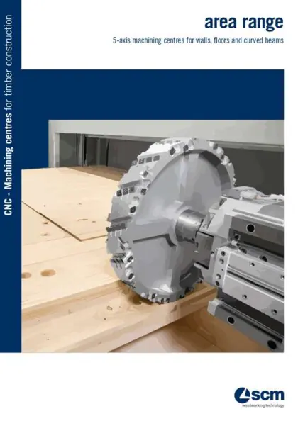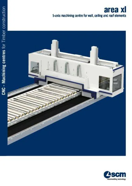area xl is the 5-axis CNC machining centre, with mobile gantry structure, for the industrial production of large format X-lam/CLT panels for wall, ceiling and roof elements. It allows fully automatic handling and processing of elements up to 400 mm thick and 3600 mm wide.