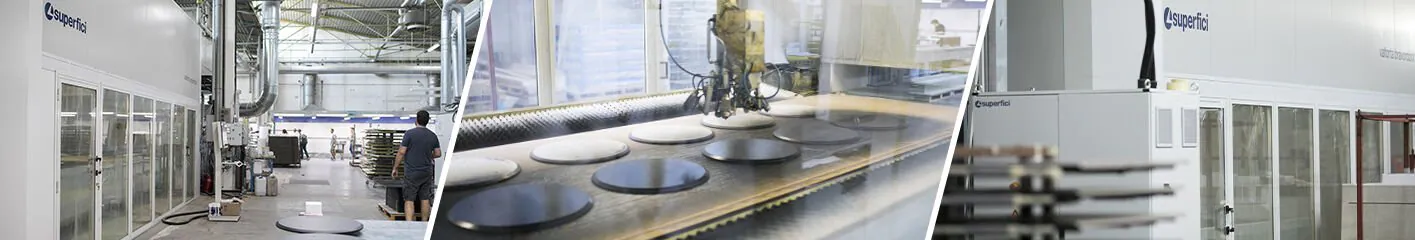 Il robot Superfici è progettato per mantenere l’ambiente di lavoro pulito e ottimale anche in caso di verniciature critiche, grazie ad un sistema di pressurizzazione con aspirazione all’interno della cabina. L’utilizzo è molto semplice e versatile: è possibile infatti trovare il corretto ciclo di spruzzatura per ogni tipo di finitura grazie ad un accurato e versatile controllo software del braccio. E’ possibile così anche programmare la posizione e l’inclinazione delle pistole adattandole anche per la verniciatura dei bordi. Il robot vernicia anche pezzi molto alti, fino a 120 mm e, all’evenienza, può essere utilizzato anche per spruzzare a regola d’arte solo la parte interna dei pannelli. Il risultato, in termini di qualità e produttività, è ottimale grazie anche all’efficiente sistema di filtrazione a secco e al sistema di trasporto a carta.
