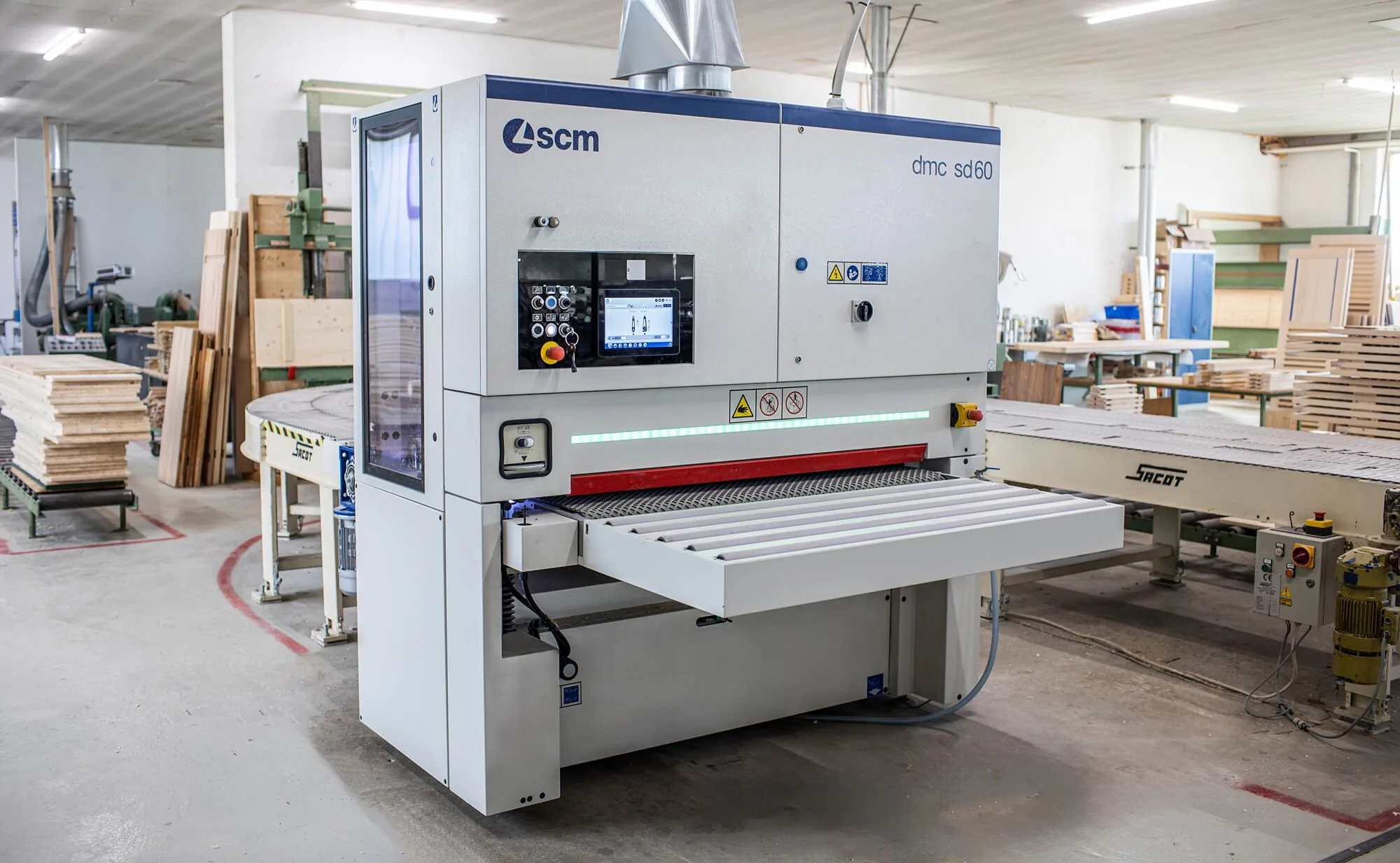 L’azienda tedesca aveva scelto soluzioni ad alta tecnologia del gruppo SCM ancora prima di acquistare il robot Maestro. Per la levigatura e calibratura si avvale di una dmc sd 60, macchina estremamente versatile. In questo modo, insieme al robot per la verniciatura, il processo di trattamento delle superfici può contare sul supporto di un unico partner tecnologico di riferimento che fa capo ad un unico grande gruppo leader nelle macchine per la lavorazione del legno da settant’anni.
