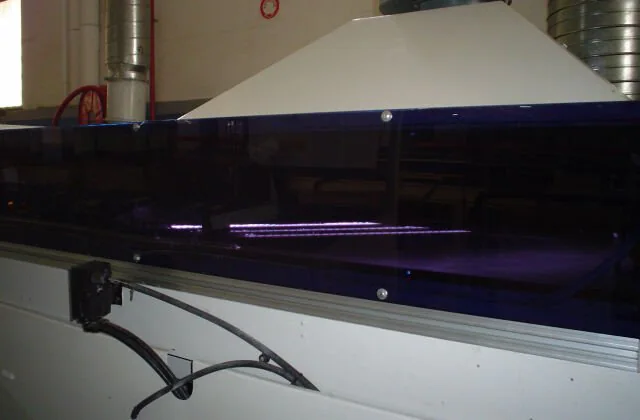 Nel caso di sistemi web to web o foglio a foglio solo con la lampada ad eccimeri in camera inerte. O può essere combinato con pre-trattamento e lampade UV finali.