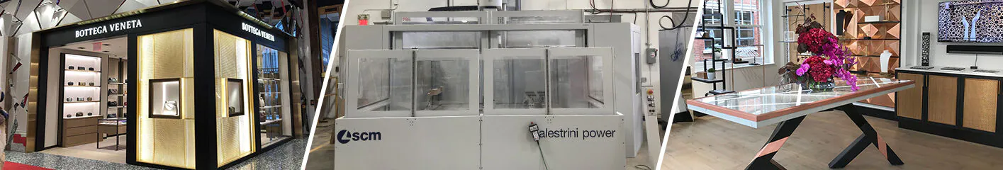 Die Kreationen dieses Unternehmens präsentieren sich mit einer schönen Ausgewogenheit von Form und Funktion. Dabei entstehen angenehme, elegante und gleichzeitig funktionale Räume für den Einzelhandel, die die Aufmerksamkeit des Kunden auf den ersten Blick auf sich ziehen und zum Kauf anregen. Zum Einsatz kommen hauptsächlich MDF-Platten, Pressholz, Sperrholz und Massivholzplatten aber auch Furniere, Lacke und Farben. Alle Produkte werden am Standort in Montreal vom Entwurf bis zur Auslieferung nach Maß gefertigt. Bestimmten Bearbeitungen werden von einer begrenzten Anzahl vertrauenswürdiger externer Lieferanten ausgeführt.