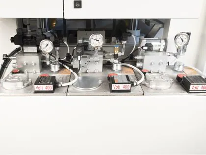 Press for continuous edge glued beam panels production with automatic loading/unloading and composition. Several solutions available to load the edge glued panels and possibility to add pneumatic stops to compose multi-row panels.