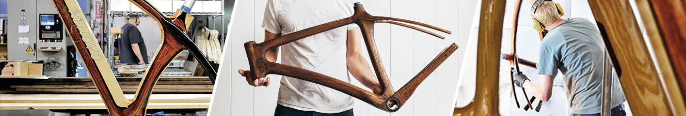 To make each Renovo frame, up to 40 pieces of wood are laminated to form blanks. A CNC work centre is used to rough out the basic shape, which workers then refine by hand. Its careful wood selection and frame design are also based on rigorous research and testing. The result is a strong, high-performance hollow-wood frame that weighs between 4 and 5 pounds, offering durability and smooth ride quality.