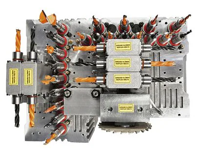 Ahorro hasta 60% de los ciclos de taladrado gracias a la cantidad de brocas (tecnología RO.AX.) con una disposición óptima para ser eficaz en todo tipo de muebles.