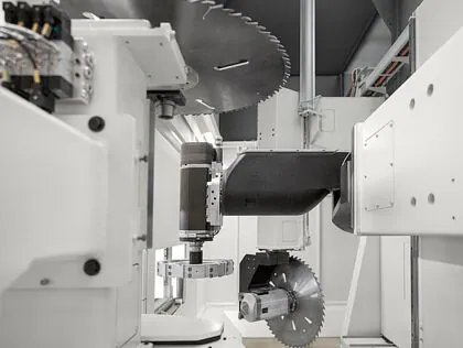 La unidad de mecanizado de 5 ejes, equipada con un disco de diámetro de 900 mm, garantiza una capacidad de corte superior, incluso en vigas grandes, con una profundidad de corte hasta 300 mm.