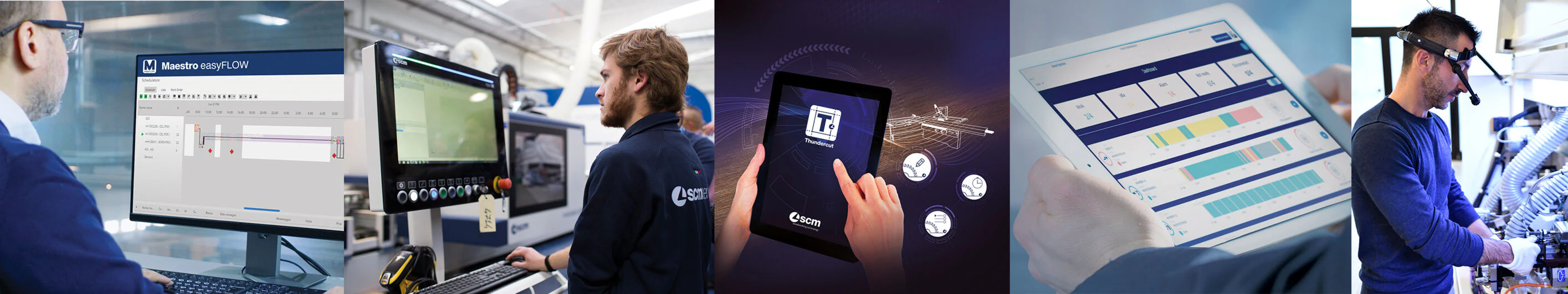 Avec l'équipe SCM, vous découvrirez une nouvelle vision de l'usine numérique, connectée et intégrée, conçue pour accompagner toutes les entreprises et tous les domaines d'application du secteur : de l'artisan à la grande industrie ; du mobilier aux portes et fenêtres, de la menuiserie à la construction en bois.