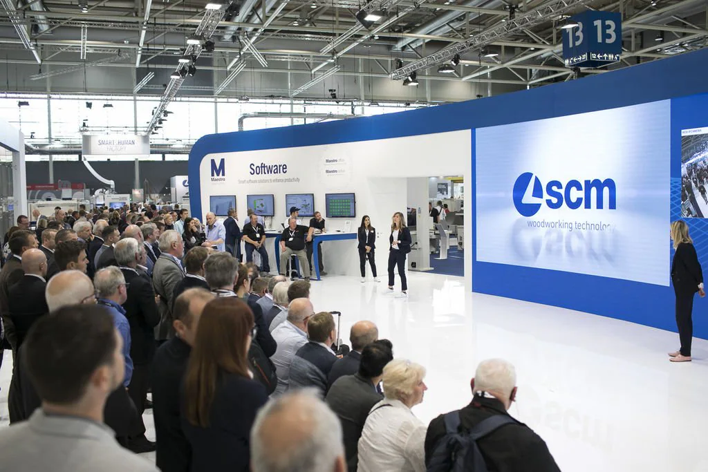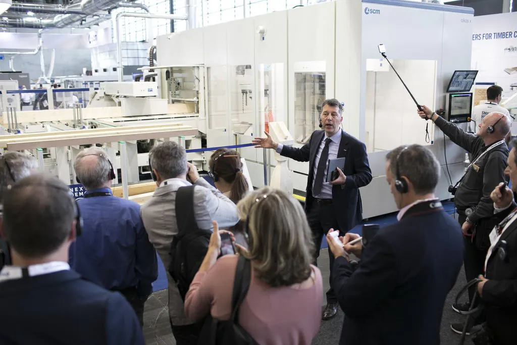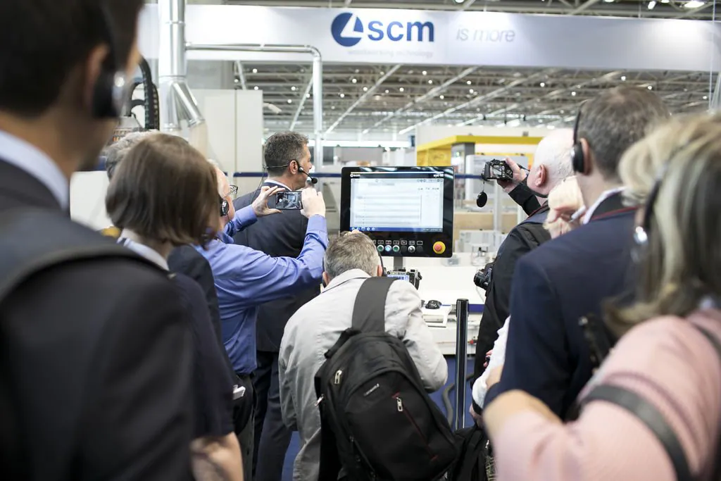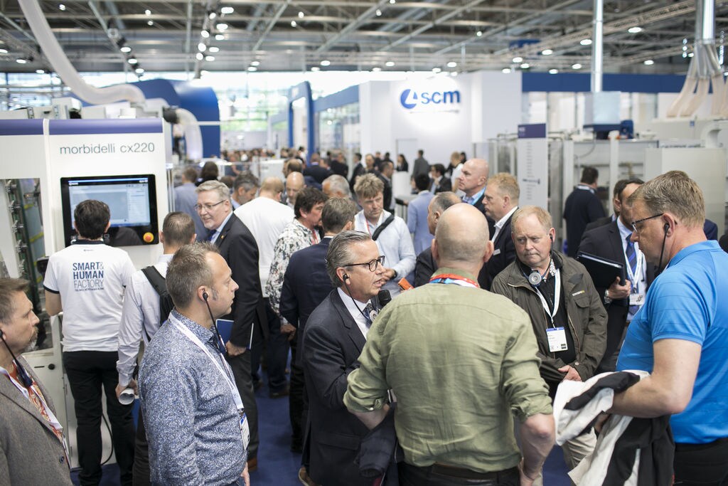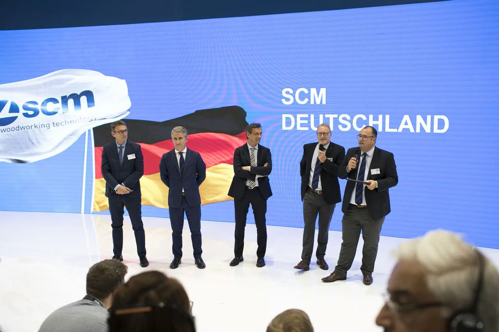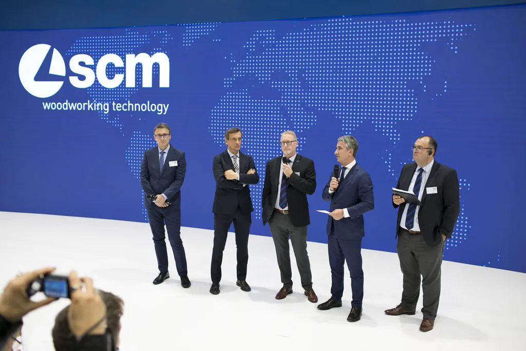 Delegations of clients from all over Europe, but also from countries as far afield as China and Australia. The prestigious Hanover Trade Fair, the most important international event for the world of woodworking continues, with a great deal of interest being shown in the vast range of SCM models on display at the huge 4,000 m2 stand. Among the models on display are the integrated solutions for surface treatment, key players in the Surface Technology Guided Tour organised by the Trade Fair, that stopped off yesterday at the SCM stand in Hall 13 and at the Superfici one in Hall 16. Centre stage, however, on this second day, was occupied by the press event with more than fifty journalists from the most important industry magazines around the world. Giovanni Gemmani, Scm Group's President reminded us all that SCM has been taking part in Ligna for sixty years, since the edition in 1959: a long, highly satisfactory path filled with new challenges at every turn, which the Italian Group has managed to overcome successfully thanks to its range of ever developing, innovative products and services. Luigi De Vito, SCM Manager reminds us that the record figures achieved in 2018 are proof of this: the Group's turnover was 700 million, 70% of which from the wood industry alone. De Vito also reminded the press that 2019 opened with a significant growth rate, in numerous markets in Europe and other continents, thanks to SCM's ability to act as an all-round partner and consultant to its clients. Uwe Kosok, Manager of the German branch, underlined future priorities, starting with the strengthening of the sales and technical support network, while Gian Luca Fariselli, the Group's Communications Manager introduced the technologies leading the way at this edition. The press conference was followed by a "virtual tour" of the Smart&Human Factory, thanks to the demo arranged for the occasion, and a tour of the stand with Federico Ratti, Innovations Manager, to find out more about the different technologies available to all those companies involved in secondary wood processing.